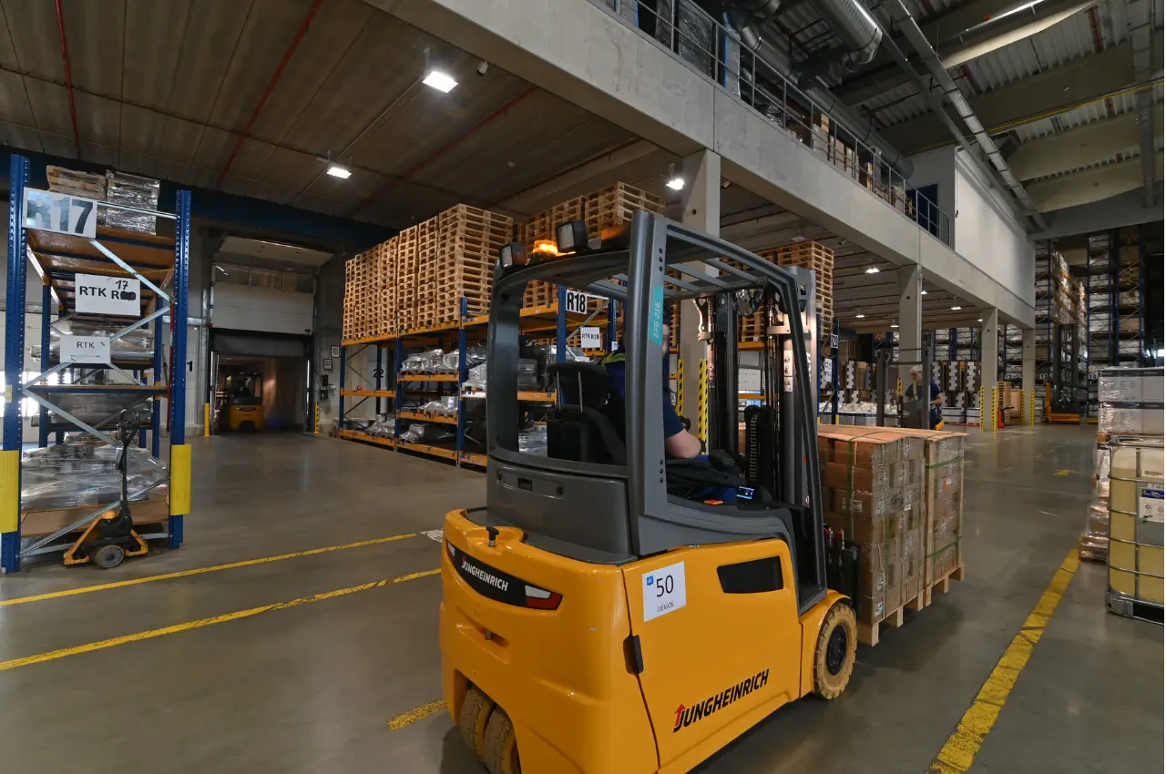 Pro drobné zboží, náhradní díly nebo vysoce obrátkové položky využíváme technologii Kardex. Tento automatizovaný výtahový systém funguje na principu „zboží k obsluze“ – namísto toho, aby skladník hledal položku v regálech, systém mu ji během několika sekund přiveze přímo k odběrnému místu.